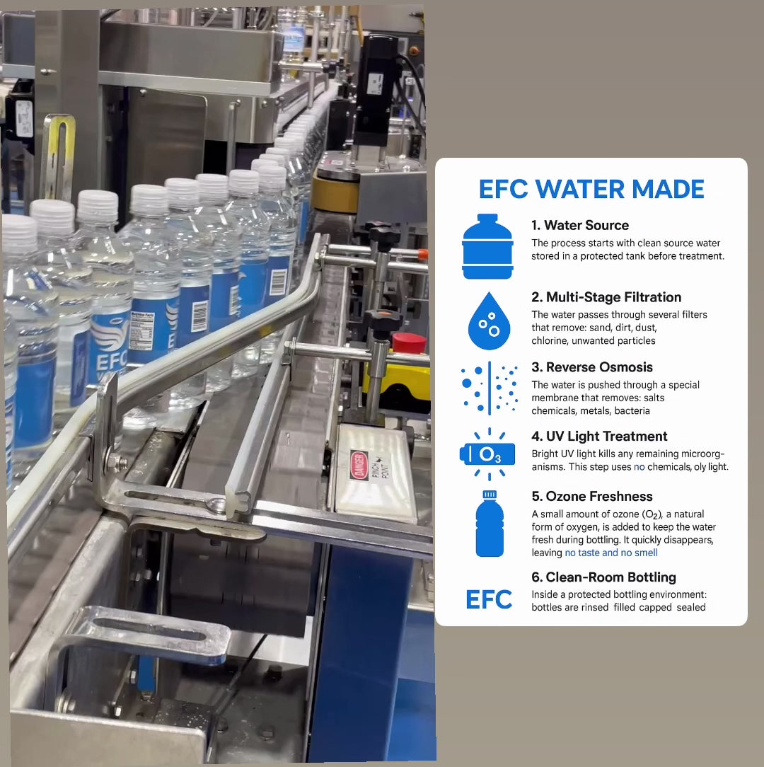 From warehouse to your location, we ensure proper handling and storage to maintain the premium quality you expect from EFC Water.